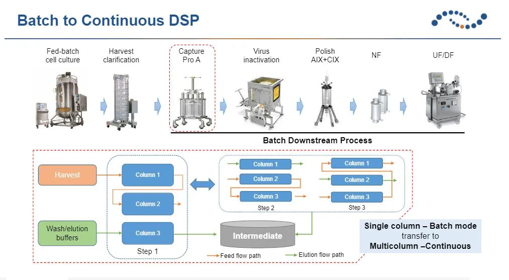 林明興博士分別從細(xì)胞株構(gòu)建、上游工藝和下游工藝三方面詳細(xì)介紹了漢騰生物的強(qiáng)化型工藝的特點(diǎn)。他表示:與放大生產(chǎn)規(guī)模的思路相反,強(qiáng)化工藝是指在更小的反應(yīng)器里通過(guò)工藝優(yōu)化去實(shí)現(xiàn)更高質(zhì)量的目標(biāo)產(chǎn)物,不僅可以達(dá)到降本增效的效果,同時(shí),也能夠帶來(lái)更少的污染。強(qiáng)化工藝可以提高運(yùn)營(yíng)效率,加速藥物研發(fā)進(jìn)度。