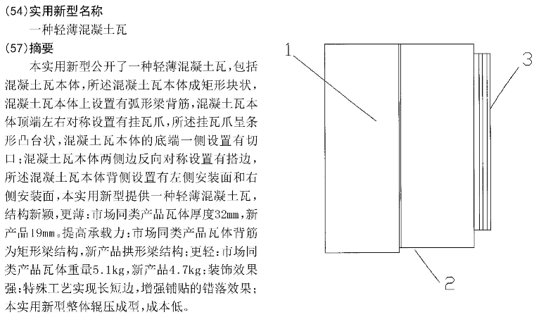 瓦德專利 一種輕薄混凝土瓦